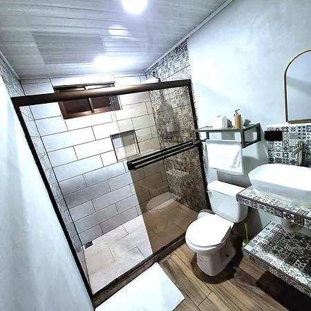 Bathroom facilities at Arenal Nephelium Country Home, Refugio Rural Con Piscina, Jacuzzi Y Balcon Con Hermosas Vistas Al Volcan Arenal, En Una Finca Privada also include a bidet. Towels are included to enhance your comfort.